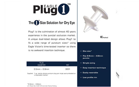 Plug1 is the culmination of almost 40 years experience in the punctal occlusion market. A unique dual-lobed design allows Plug1 to fit a wide range of punctum sizes using Eagle Vision's time-tested inserter so there is no awkward insertion technique.