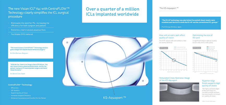 The Visian ICL is a phakic intraocular lens (IOL) for correcting myopia and Hyperopia. The ICL surgery is an additive surgery; the Visian ICL does not replace the eye's natural lens. Instead, the ICL is placed between the iris and the natural lens through a brief surgical procedure. The Visian ICL gives another option for treating refraction errors than Lasik. Now, patients who are seeking the latest approved procedures for vision correction and exceptional Quality of Vision or who want to avoid permanent alteration of corneal tissues and eye structure after Laser have another choice for correction of nearsightedness and farsightedness. The Visian ICL is made from Collamer, a unique collagen co-polymer designed specifically for the Visian ICL lens. This lens material has greater biocompatibility than acrylic and silicone lenses used in other phakic IOLs. The Visian ICL is also foldable, requiring a smaller incision (3.0 mm) during the surgical procedure than other available Phakic lenses. The safety and effectiveness of the Visian ICL implantation procedure has been proven with over 300,000 implants worldwide along with more than 14 years of CE approval and 7 years of U.S. FDA approval. The Visian ICL is meant to stay in the eye indefinitely. However, if overcorrection or under correction occurs, a complication develops, or a patient's vision changes, the Visian ICL can be removed or exchanged by a trained ophthalmic surgeon. Patient satisfaction with the Visian ICL is very high; over 99 percent of patients in the clinical trial were extremely satisfied with their vision after the procedure!