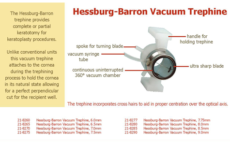 The trephine incorporates cross hairs to aid in proper centration over the optical axis.